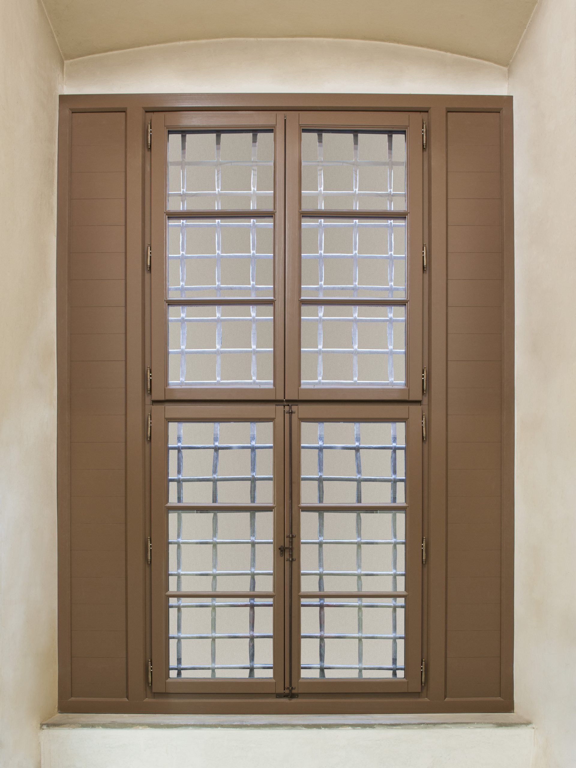 Finestra esterna con impennata fissa , sezioni speciali richieste dalla committenza . Ferramenta speciale in stile fiorentino